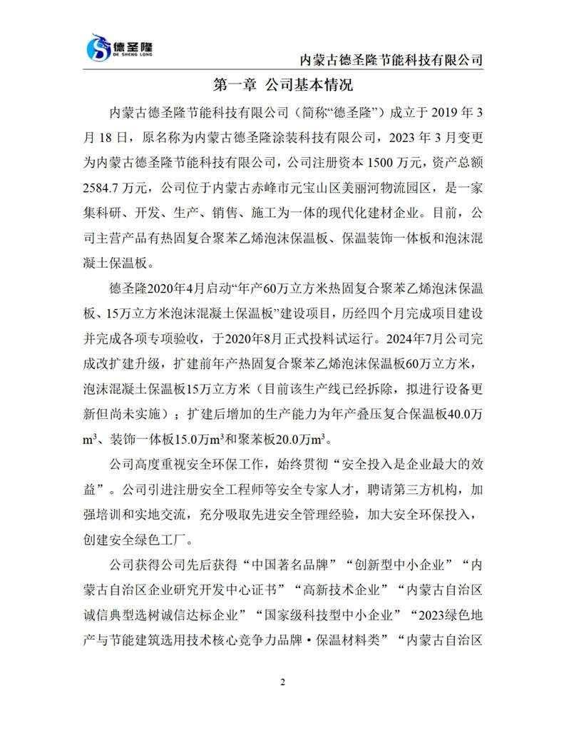 內(nèi)蒙古德圣隆節(jié)能科技有限公司成立于2019年,位于內(nèi)蒙古赤峰市元寶山區(qū)美麗河鎮(zhèn)物流園區(qū),是一家集科研、開(kāi)發(fā)、生產(chǎn)、銷售、施工為一體的現(xiàn)代化建材企業(yè)。公司主營(yíng)產(chǎn)品:熱固復(fù)合聚苯乙烯泡沫保溫板、保溫裝飾一體板和泡沫混凝土保溫板,年生產(chǎn)能力達(dá)到6000000平方米。